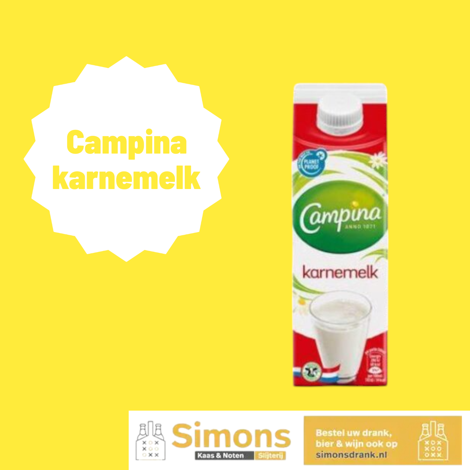 Campina Karnemelk€ 1,25 Karnemelk Campina Karnemelk aantal Toevoegen aan winkelwagen Categorie: Drinken Tag: Karnemelk Gerelateerde producten Spa Blauw € 1,00 Toevoegen aan winkelwagen AA high energy drink € 1,50 Toevoegen aan winkelwagen Redbull Energy Drink € 2,00 Toevoegen aan winkelwagen Fanta € 1,25 Toevoegen aan winkelwagen
