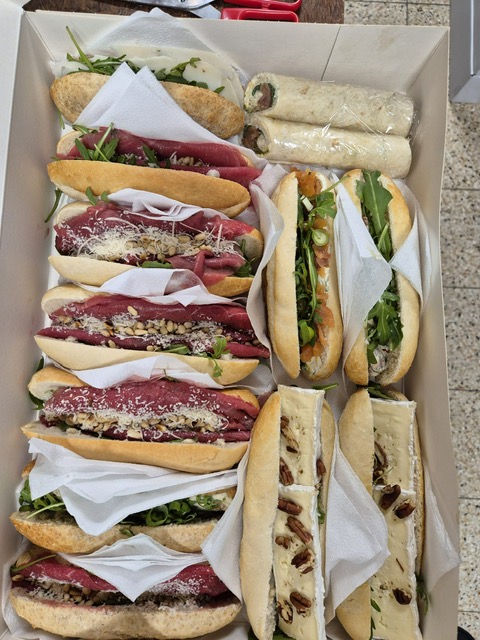 Het extra vergaderpakket bestaat uit 2,5 broodje per persoon, inclusief zuivel (keuze uit halfvolle melk of karnemelk). Een mix van witte en bruine kadetten, pistolets en krentenbollen met diverse soorten beleg.